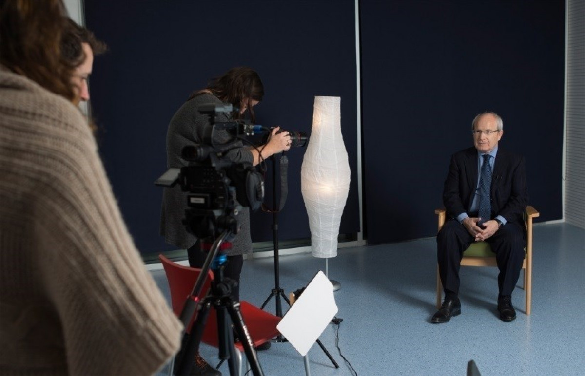 Montilla, en la grabación de la campaña de Plataforma per la Llengua