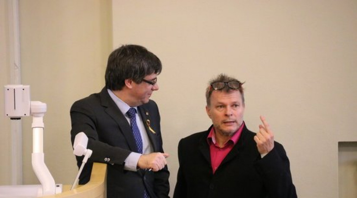 Puigdemont con el diputado finlandés Mikko Kärnä en Helsinki