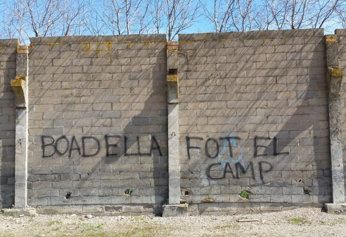 "Boadella fot el camp", es la pintada que se ha encontrado el presidente en el exilio de Tabarnia a su vuelta de Waterloo, en una pared del pueblo de Verges.