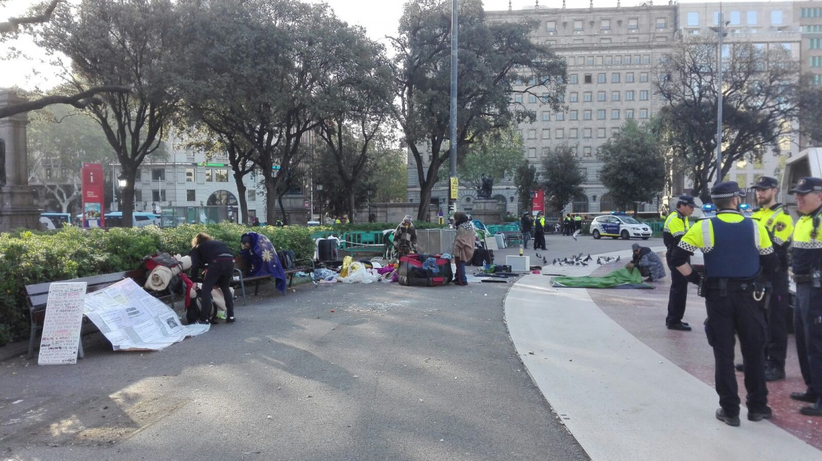 Desalojan las acampadas de los sintecho y los independentistas de plaza Catalunya