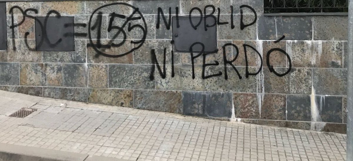 Las pintadas identifican al PSC con el 155 y amenazan con que no habrá "ni olvido ni perdón".