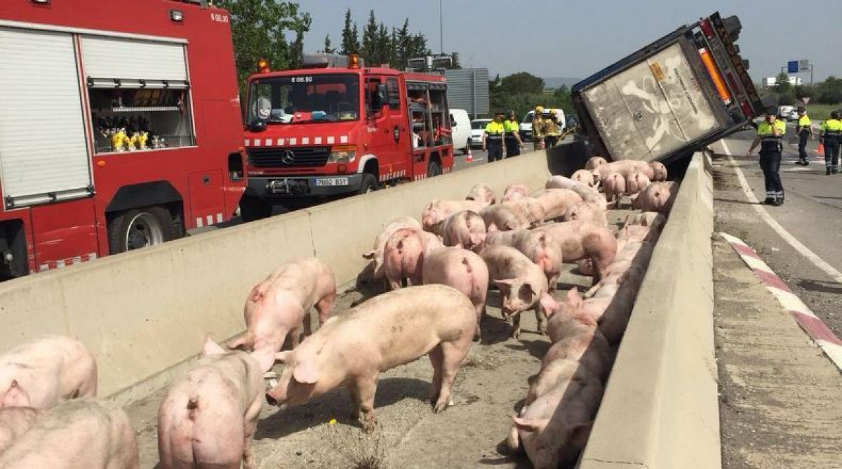 Un camión que transportaba 209 cerdos ha volcado en la carretera C-14 a la altura de Vila-seca, en un accidente en el que el conductor ha resultado ileso pero algunos animales han muerto, según ha denunciado este miércoles la entidad animalista Pacma.