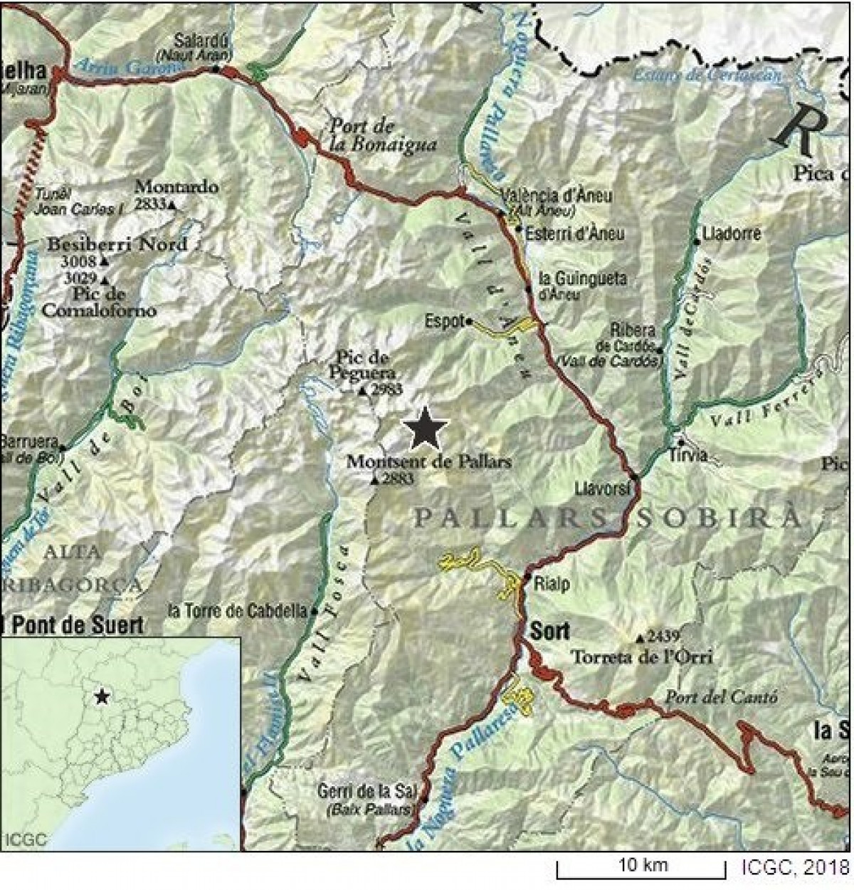 Según ha explicado el ICGC, el terremoto ha ocurrido a las 23.51 horas del domingo y el epicentro se ha localizado a un kilómetro de profundidad en una zona montañosa poco habitada.