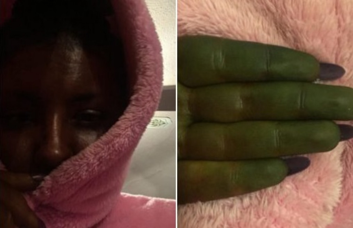 Pero lo peor todavía estaba por legar. Poco después, el tono oscuro de la piel de Danni empezó a coger una tonalidad verdosa.