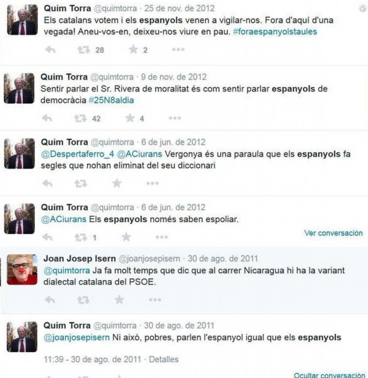 Los comentarios xenófobos de Quim Torra en Twitter: "Los españoles solo saben expoliar"
