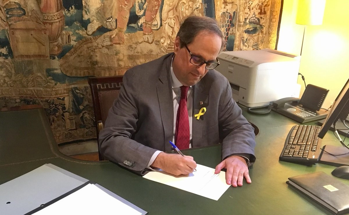 El presidente Quim Torra ha firmado este sábado al mediodía el decreto que estructura los ámbitos del Govern y el de nombramiento de los 13 consellers del Consell Executiu, y está previsto que el próximo miércoles 23 los consellers tomen posesión.