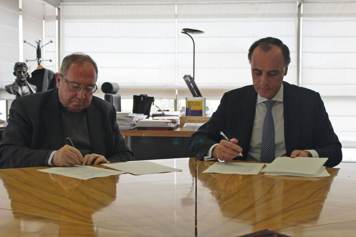 El director territorial de Madrid de CaixaBank, Juan Gandarias, y el presidente de la Cámara de Comercio de España, José Luis Bonet, han firmado un acuerdo de colaboración que permitirá mejorar la financiación de las cámaras territoriales para la ejecución de sus proyectos tanto nacionales como en el ámbito de la Comisión Europea.