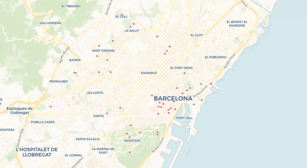Mapa de lavabos públicos en Barcelona.
