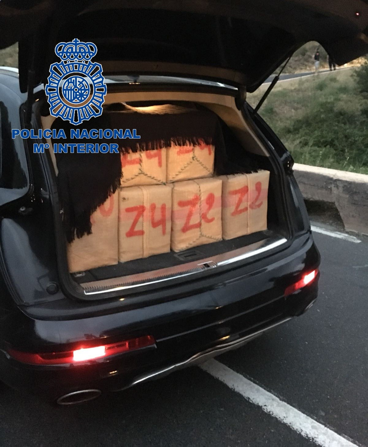 Los investigadores hallaron los 600 kilos de hachís ocultos en el todoterreno en 20 fardos tapados con mantas negras, que pasaban desapercibidos porque el vehículo tenía los cristales tintados.