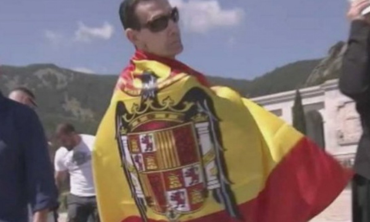 El que fuera pareja musical de Almodóvar en los 80 ha asistido al Valle de los Caídos con una bandera franquista para protestar por la intención del Gobierno de exhumar los restos de Franco.