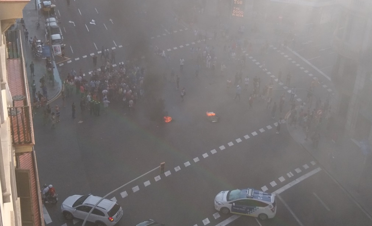 Poco después han comenzado a quemar neumáticos también en el centro de Barcelona.