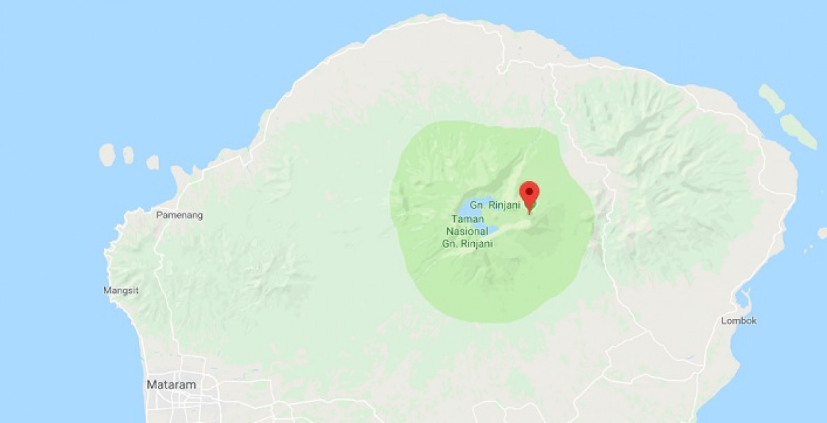 Localización del volcán Rianjani en la isla de Lombok, Indonesia/Google maps.