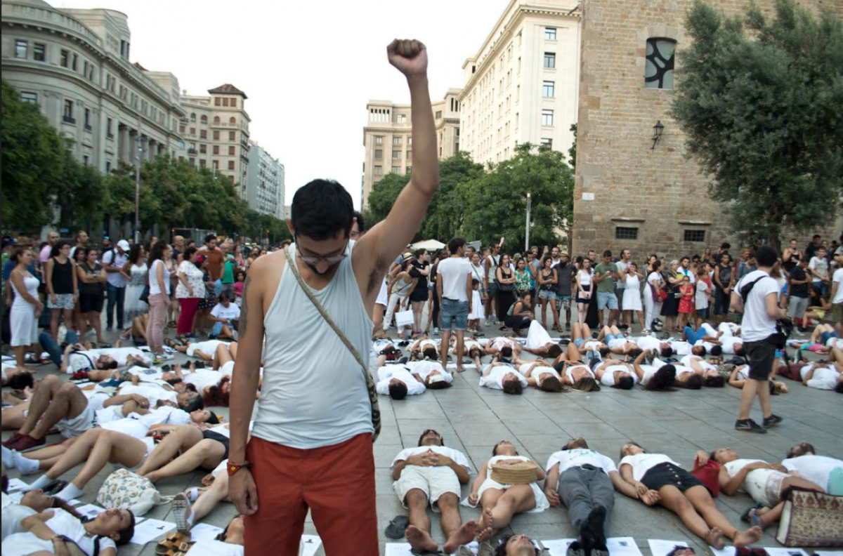 Esta escena tuvo lugar la tarde del pasado martes 7 de agosto en la plaza de la Catedral de Barcelona, recuperada por unas horas de la masificación del turismo veraniego. Mientras en Bogotá tenía lugar la toma de posesión del nuevo presidente de la República, Iván Duque, en un acto en que quedaron bien claras las intenciones del próximo gobierno de incumplir los Acuerdos de La Habana, la comunidad colombiana salía a la calle en ciudades de todo el mundo. Salía a recordar a sus líderes y lideresas asesinados, a denunciar que la cifra crece más y más, de manera exponencial, sin que se tomen medidas efectivas. A llorar por los muertos, pero también a también a bailar por la vida. A demostrar que la paz no es firmar sin más un papel, sino enfrentar con valentía la violencia estructural del segundo país más desigual de toda América Latina.