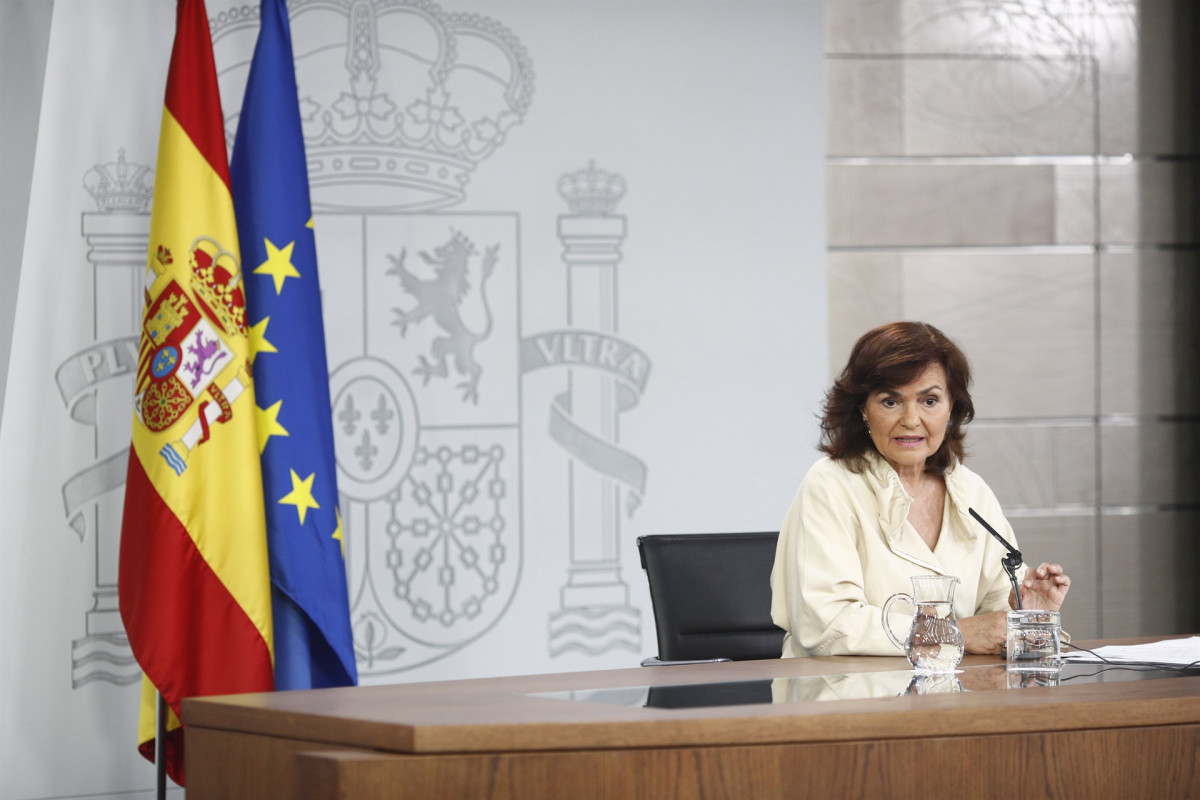 La vicepresidenta del Gobierno, Carmen Calvo, ha cargado contra la presencia de "elementos que no contribuyen a la convivencia" en las instituciones de Catalunya, y ha advertido de que los símbolos que "solo representan a una parte" de la población deben permanecer en el ámbito privado.