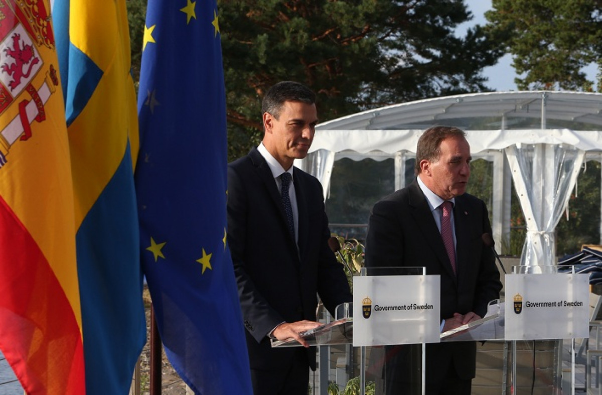 Pedro Sánchez junto al primer ministro sueco Sefan Löfven este miércoles.