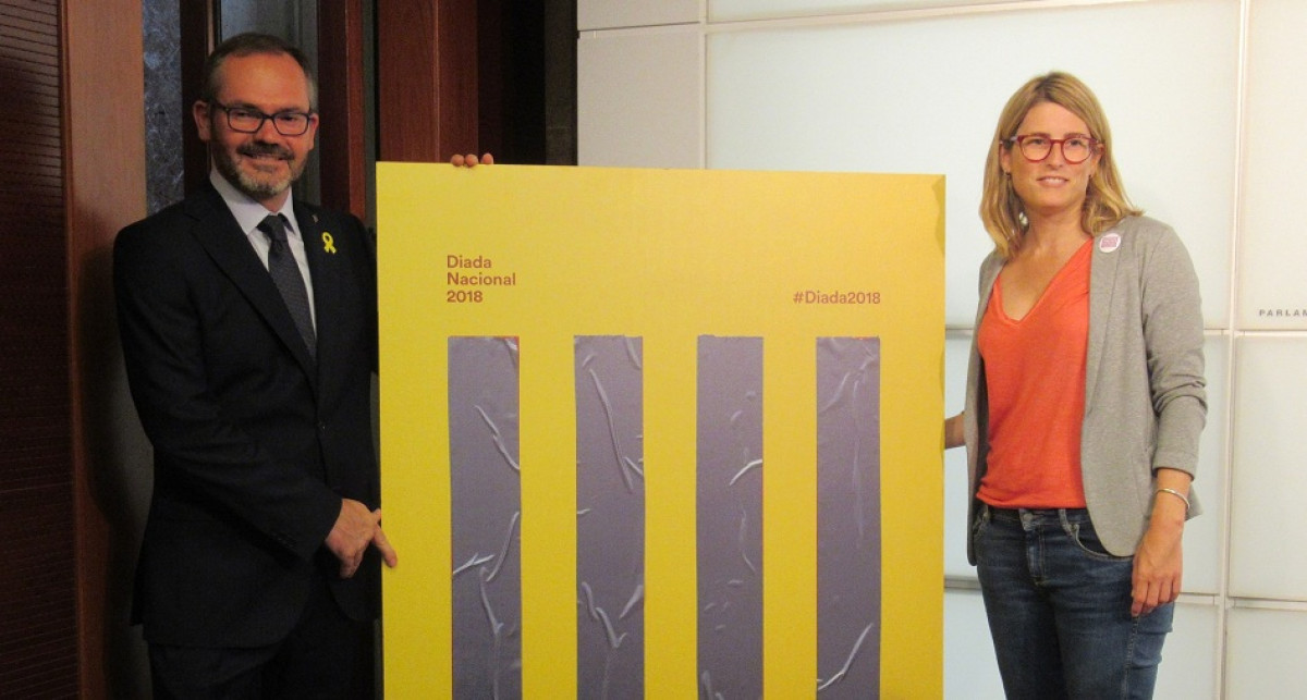 El cartel de la Diada también ha originado polémica: son las cuatro bandas rojas de la bandera catalana tapadas con cinta aislante, como metáfora sobre la falta de libertad de expresión que el Govern considera que hay en Catalunya.