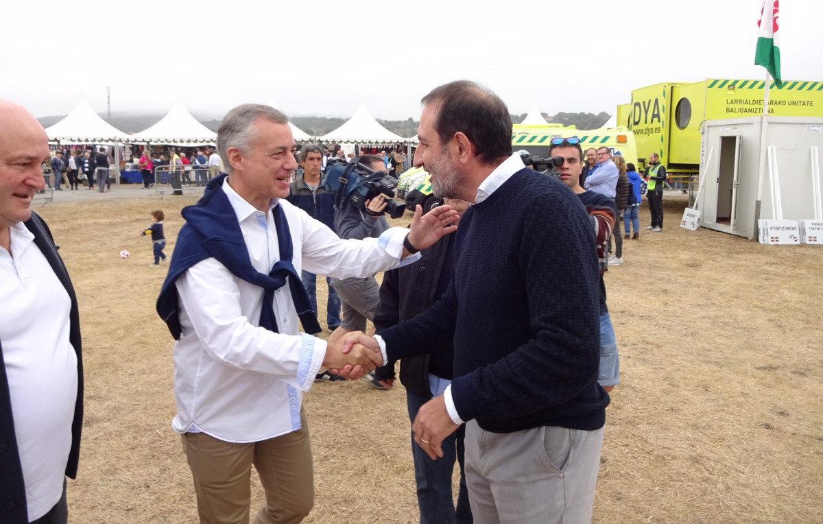 El lehendakari Íñigo Urkullu y Ramon Espadaler se saludan en el Alderdi Eguna