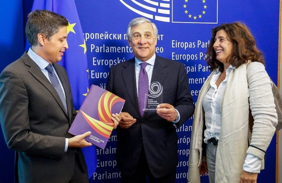Tajani ha asegurado: "Recibo el premio de Sociedad Civil Catalana. Un placer estar con vosotros, ejemplo de compromiso con la libertad, tolerancia y europeismo".