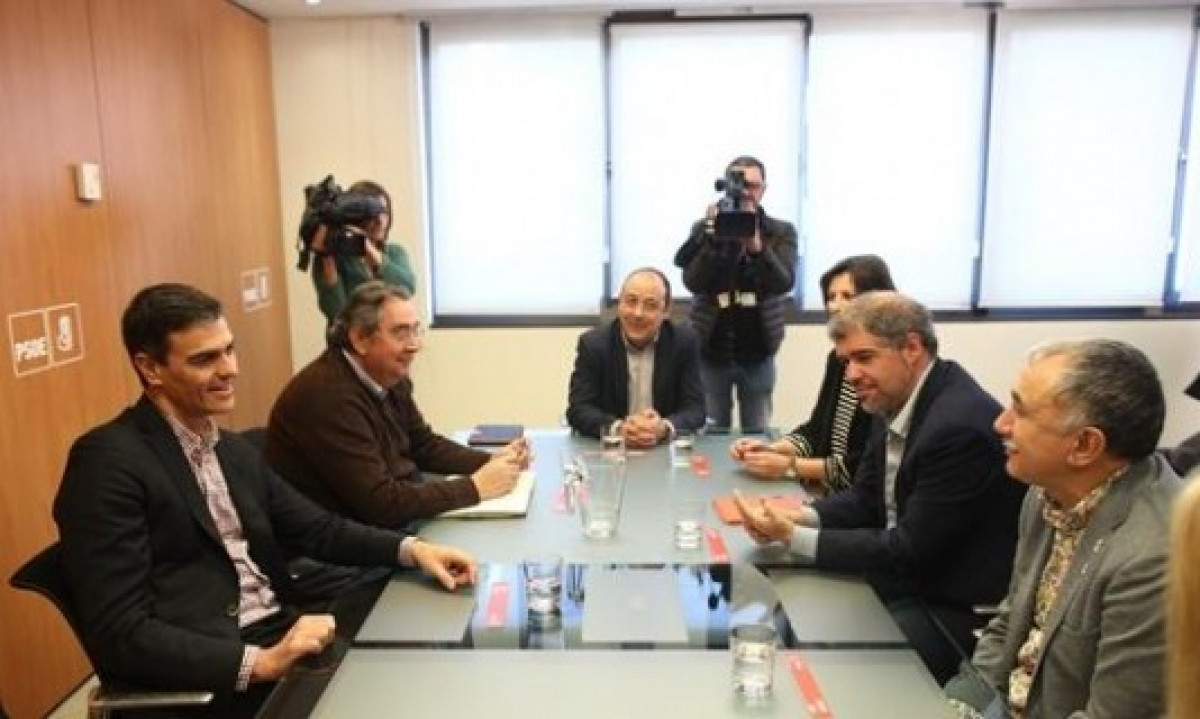 Pedro Sánchez con Unai Sordo y Pepe Álvarez (Europa Press)