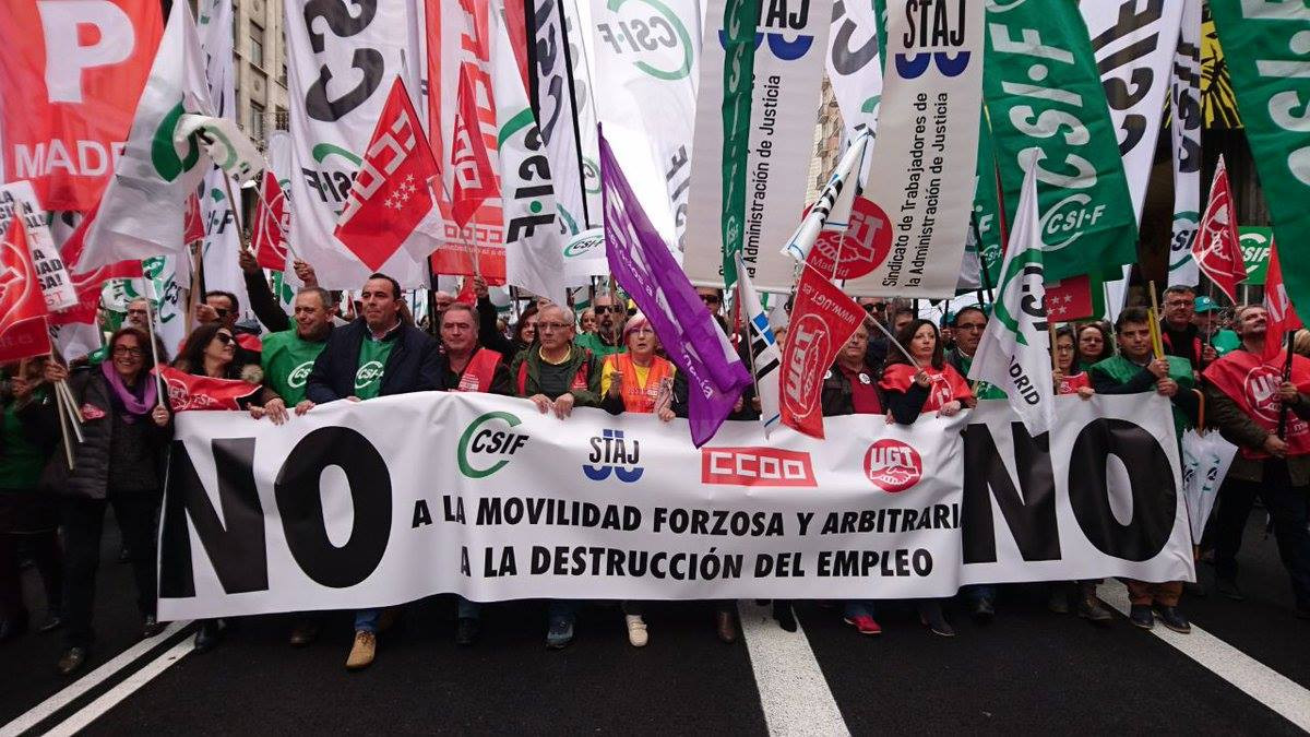 Según los sindicatos convocantes -CCOO, UGT, Central Sindical Independiente y de Funcionarios (CSIF) y Sindicato de Trabajadores de la Administración de Justicia (STAJ)- un 80 por ciento de los funcionarios han secundado la huelga y unos 5.000 trabajadores de toda España han participado en la manifestación.