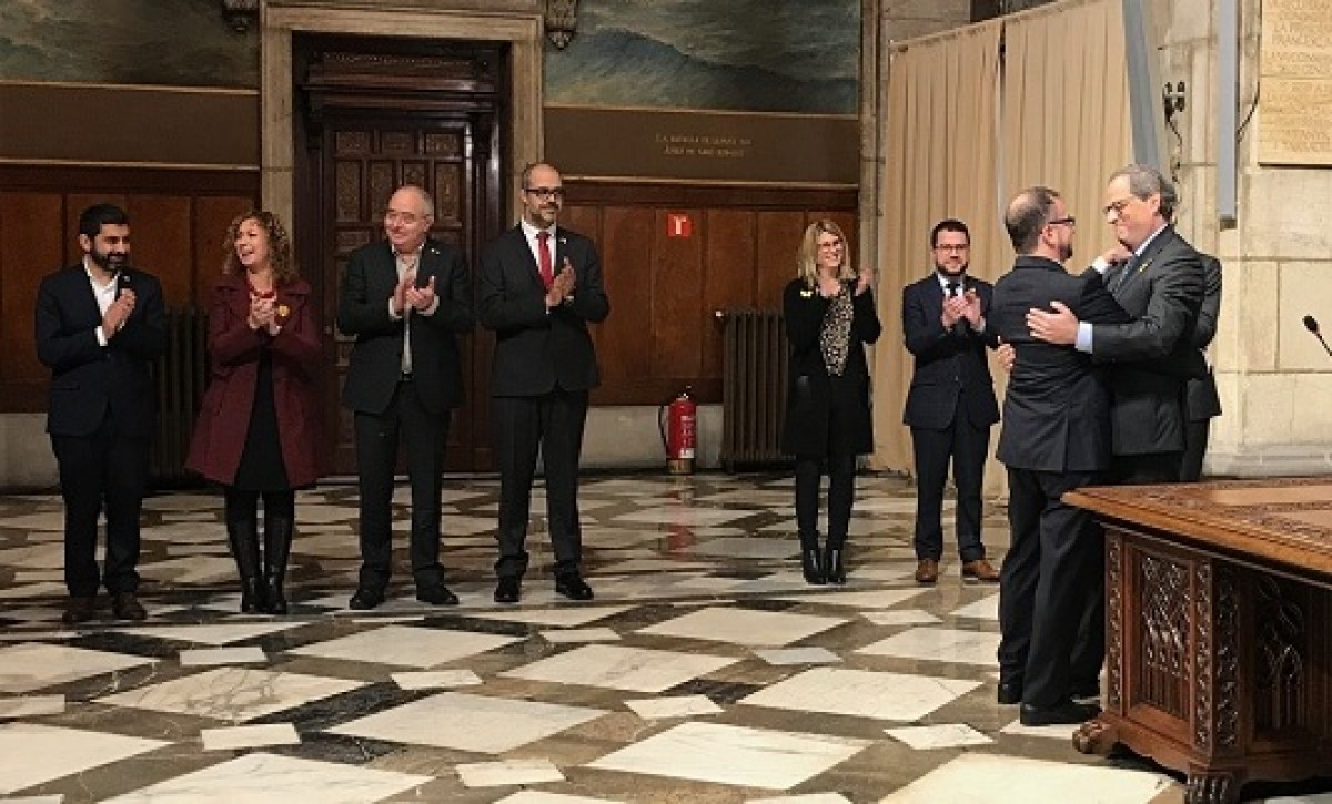 En el acto de toma de posesión en el Palau de la Generalitat, el presidente catalán, Quim Torra, ha explicado que Bosch debe realizar su tarea "como ministro de Asuntos Exteriores del país".