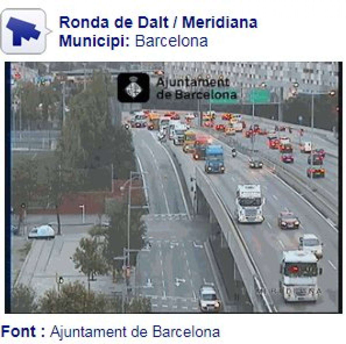 Marcha lenta de camiones en las rondas de Barcelona con kilómetros de retenciones