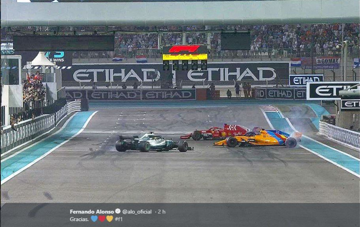 Las imágenes valen más que mil palabras. Hoy Fernando Alonso, el español que ha logrado dos campeonatos de Fórmula 1, ha disputado su última carrera en esta categoria, quedando onceavo en un Mundial ya decantado para su eterno rival, Lewis Hamilton.