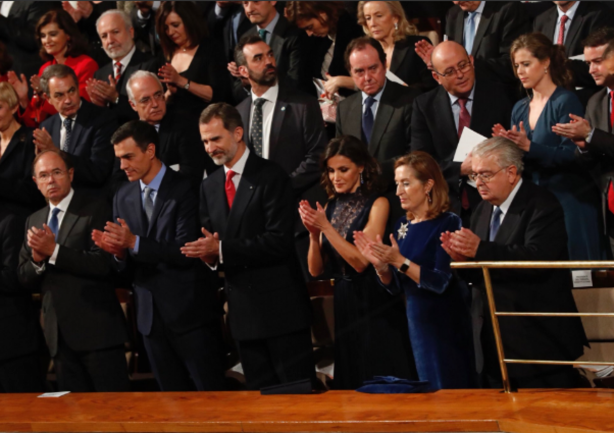 A su llegada al Auditorio, los monarcas han sido recibidos por el presidente del Gobierno, Pedro Sánchez, la presidenta del Congreso de los Diputados, Ana Pastor, el presidente del Senado, Pío García-Escudero, el presidente del Tribunal Constitucional, Juan José González Rivas, y el presidente del Tribunal Supremo y del Consejo General del Poder Judicial, Carlos Lesmes, entre otras personalidades.