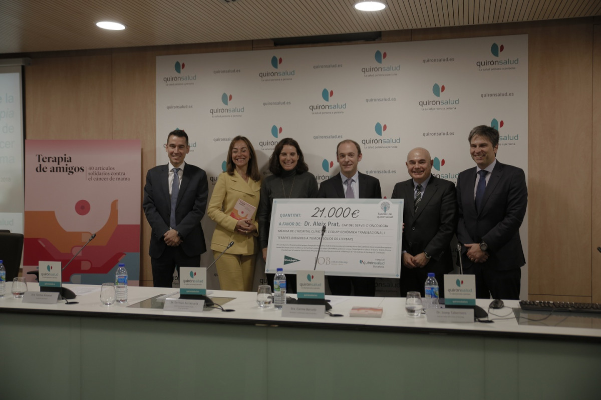Un jurado formado por profesionales de reconocido prestigio en oncología –Dr. Josep Tabernero, Dr. Joaquín Arribas, Dr. Agustí Barnadas, Dr. José Ignacio Toscas, Dr. Joan Carles, Dr. Raimon Miralbell, Dr. Juanjo Torrent–se encargó de evaluar los proyectos y seleccionó a los tres finalistas, que fueron remitidos internamente al Comité Científico de Oncología Quirónsalud, que seleccionó el proyecto del Dr. Aleix Prat como ganador.