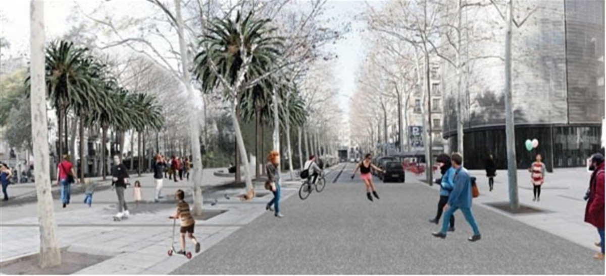 En el caso de la rambla del Raval, se buscará potenciar su carácter de punto de encuentro, de plaza y, a la vez, de cruce, por lo que se eliminarán las barreras transversales como aparcamientos para favorecer la relación con las aceras de los laterales, y se incluirán espacio para jóvenes, una zona de juegos infantiles y espacios verdes.