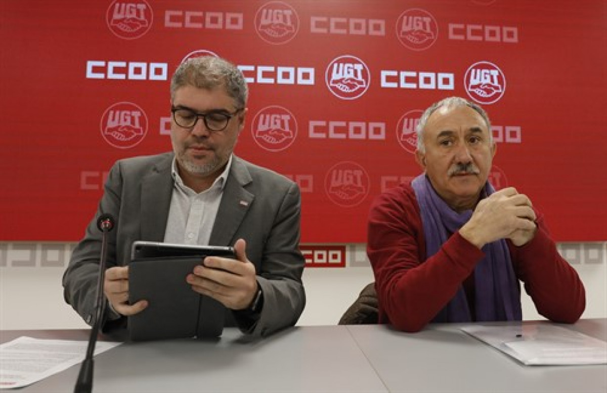 El secretario general de CC.OO., Unai Sordo, y el de UGT, Josep Maria Álvarez, han iniciado este martes un proceso de movilización que culminará el próximo 8 de marzo, Día Internacional de la Mujer, con paros laborales de dos horas por turno con la posibilidad de que en algunos sectores, "por sus particularidades y reivindicaciones", el paro sea de 24 horas.