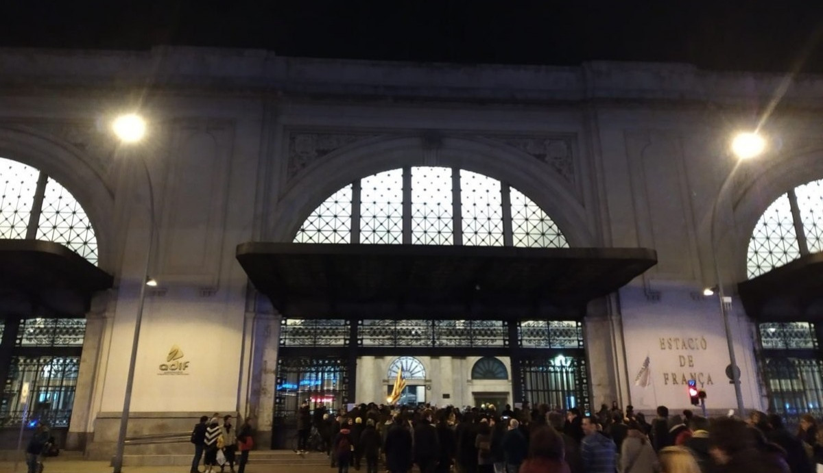 Unos 150 manifestantes ha ocupado las vías del tren en la estación de França de Barcelona durante 15 minutos este miércoles por la noche, en protesta por las detenciones de la Policía Nacional a raíz del corte del AVE en Girona durante el aniversario del 1-O.