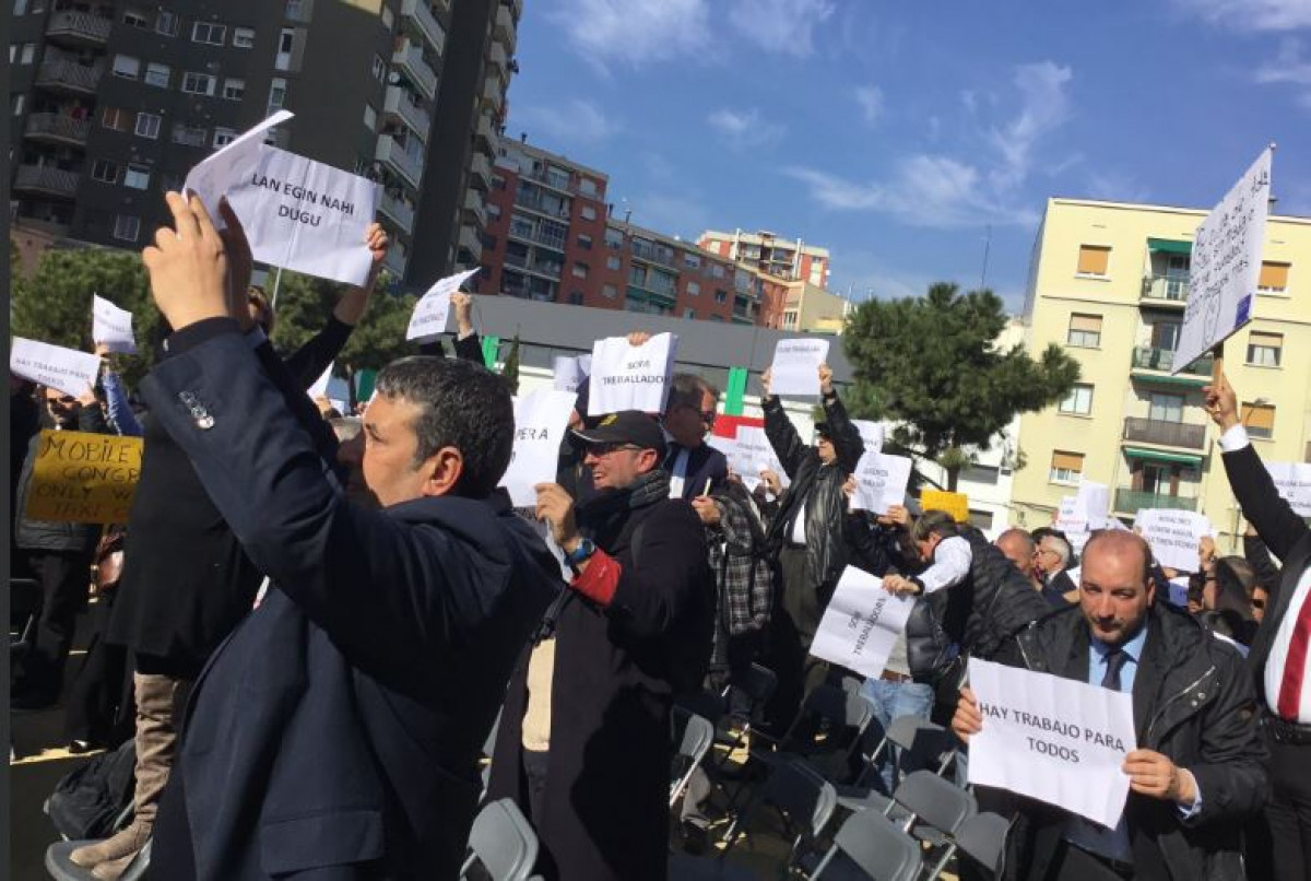 No han interrumpido los discursos y al final del acto han desplegado pancartas, con lemas como 'Hay trabajo para todos', y lamentando haberse quedado sin trabajo, después de que plataformas como Uber y Cabify abandonaran Barcelona en desacuerdo con el decreto aprobado por el Govern.