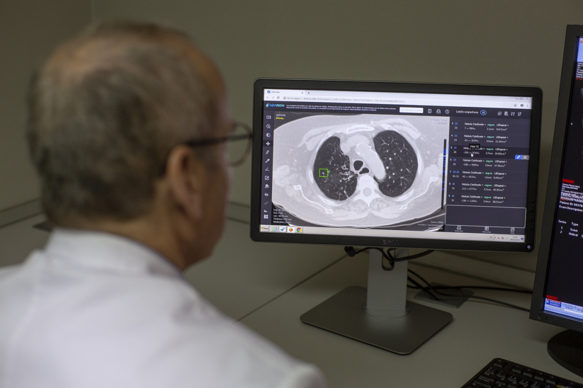 "La tecnología de inteligencia artificial desarrollada por la empresa china Infervision AI-CT localiza características sospechosas de cáncer de pulmón a partir de imágenes de TAC de tórax, marca las ubicaciones y los números de corte de los nódulos pulmonares y analiza la malignidad de los nódulos" explica el doctor Cristóbal Segura, jefe del Servicio de Diagnóstico por la Imagen del Hospital Universitari Dexeus.
