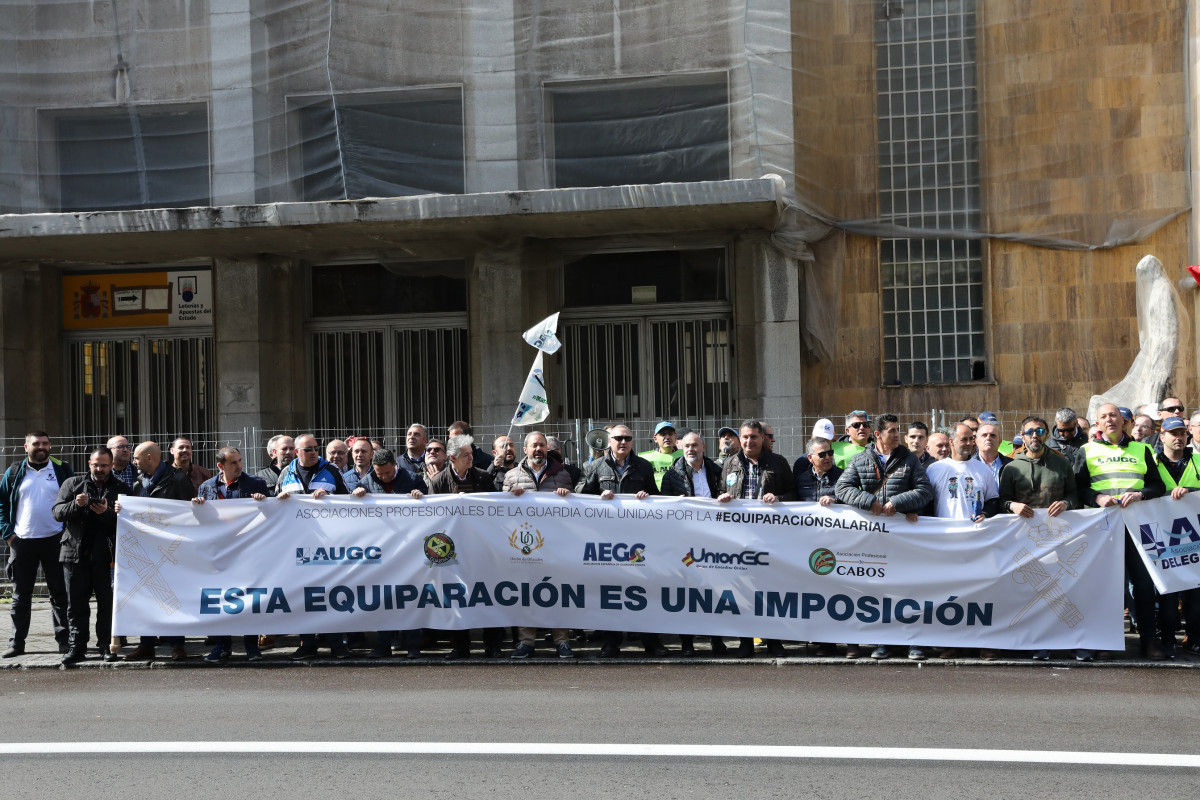 Un centenar de guardias civiles se ha concentrado este miércoles frente a la Dirección del Instituto Armado en Madrid secundando la convocatoria de las asociaciones profesionales para pedir la dimisión del director general, Félix Azón, por modificar de forma "unilateral" el porcentaje del reparto del acuerdo de equiparación salarial de 2019.
