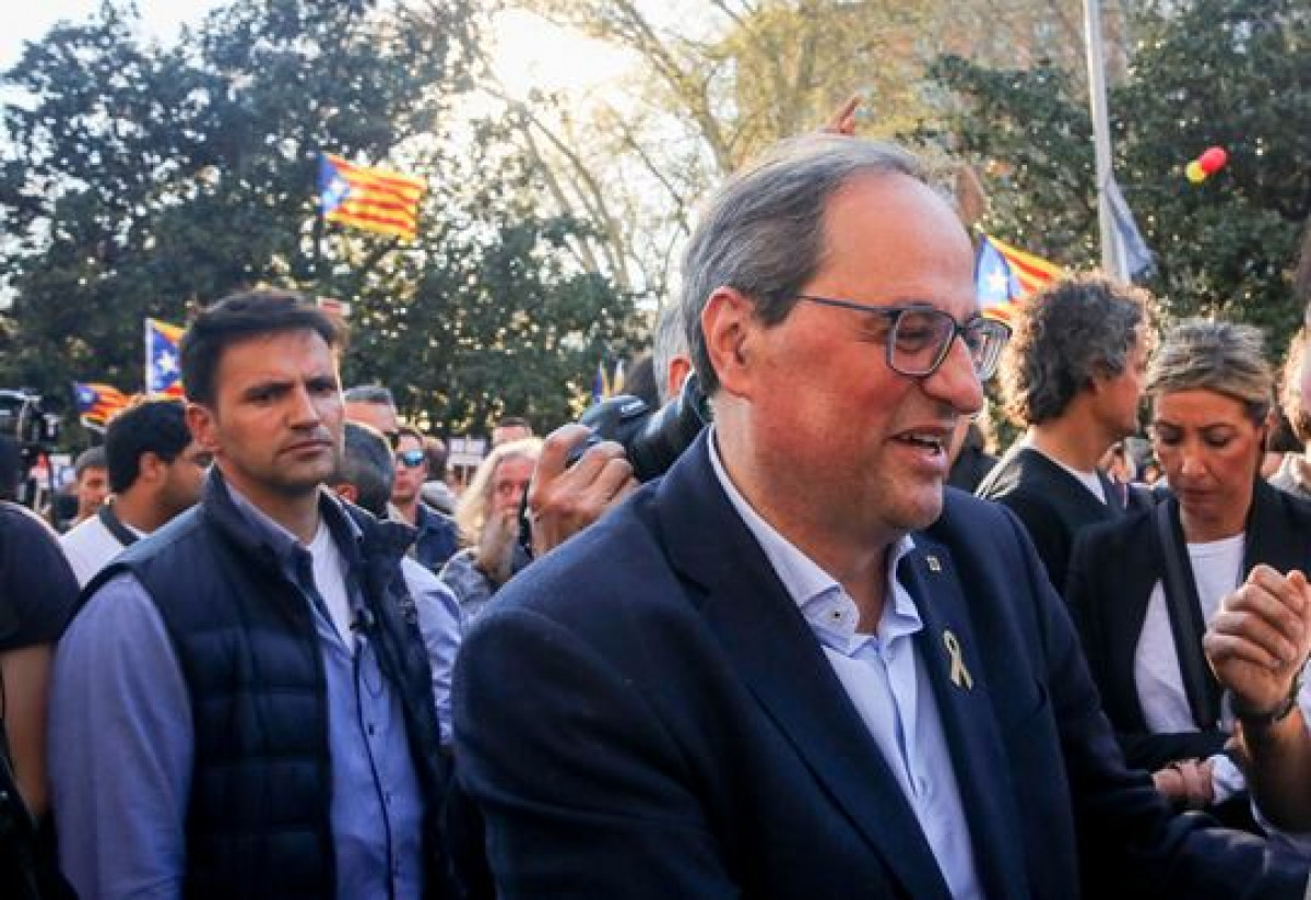 Al inicio de la manifestación para protestar por el juicio que se celebra en el Tribunal Supremo a los líderes del 'procés' independentista, Torra ha asegurado que la movilización es para "denunciar esta injusticia al Estado", por lo que no pararán hasta que el derecho de autodeterminación "sea ejercido".