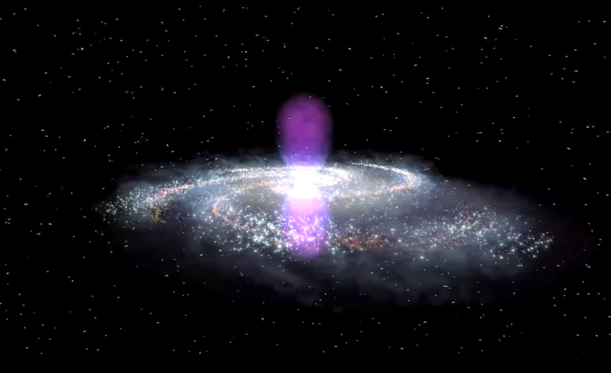 Estas enormes burbujas son dos grandes estructuras de rayos gamma que se extienden a ambos lados del centro galáctico de la Vía Láctea y que son debidas como hemos visto a una enorme expulsión de gases emitidos desde el agujero negro que tenemos en el centro de la galaxia.