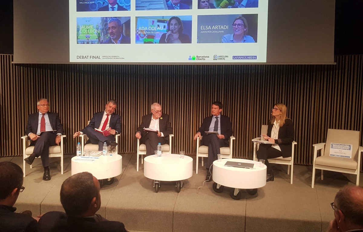 La 'número dos' de JxCat en las elecciones municipales en Barcelona, Elsa Artadi, y los alcaldables Manuel Valls, el republicano Ernest Maragall, el socialista Jaume Collboni y el popular Josep Bou han expuesto sus puntos de vista en un debate organizado por Barcelona Comerç y Barcelona Oberta, al que no ha acudido pese a ser invitada la alcaldesa, Ada Colau -a la que se ha dejado una silla vacía al no detallar hasta este mismo martes si asistiría-, y al que la CUP Capgirem ha asegurado que no ha sido invitada.