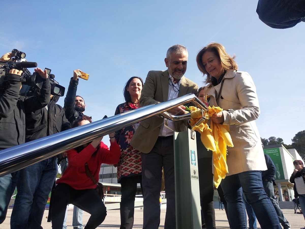 Después de la comparecencia, el portavoz de Cs en el Parlament, Carlos Carrizosa, y Mejías han comenzado a arrancar con una tijera todos los lazos amarillos presentes en la plaza Cívica de la universidad.
