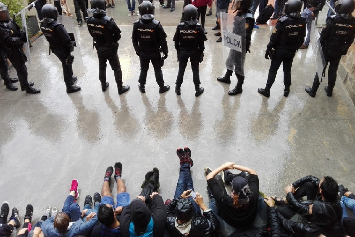 Al llegar, han indicado a preguntas del fiscal Jaime Moreno, que casi un centenar de personas trataron de impedirles el paso sentándose en el suelo para que los agentes no lo tuvieran fácil a la hora de poder alcanzar las urnas. Ahí "empezó la agresividad, la hostilidad" de los votantes, que "sujetaban las piernas" a los policías para que no pudieran pasar y les propinaban "pellizcos".