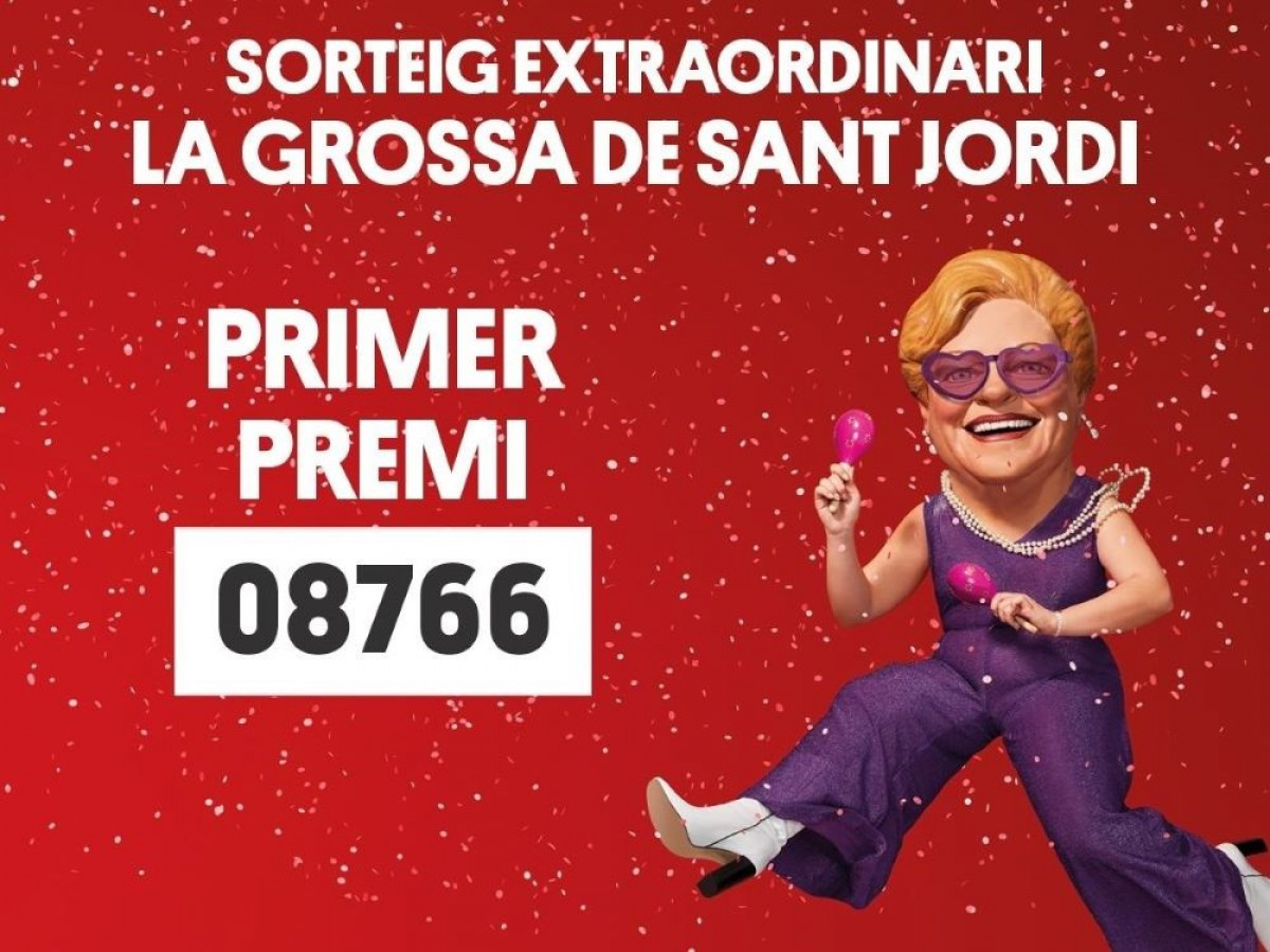El primer premio de 'La Grossa de Sant Jordi', dotado con 50.000 euros por billete, ha recaído en el número 08766, ha informado el sorteo a través de su cuenta de Twitter.