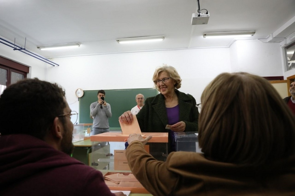 Manuela Carmena, que esta tarde seguirá los resultados de las elecciones por la televisión, ha transmitido a la prensa que siempre que hay elecciones "cualquier demócrata se siente muy satisfecho", con emoción y orgullo por repetir el acto de votar. Ha llamado a cuidar la democracia y a cumplir las obligaciones cívicas.