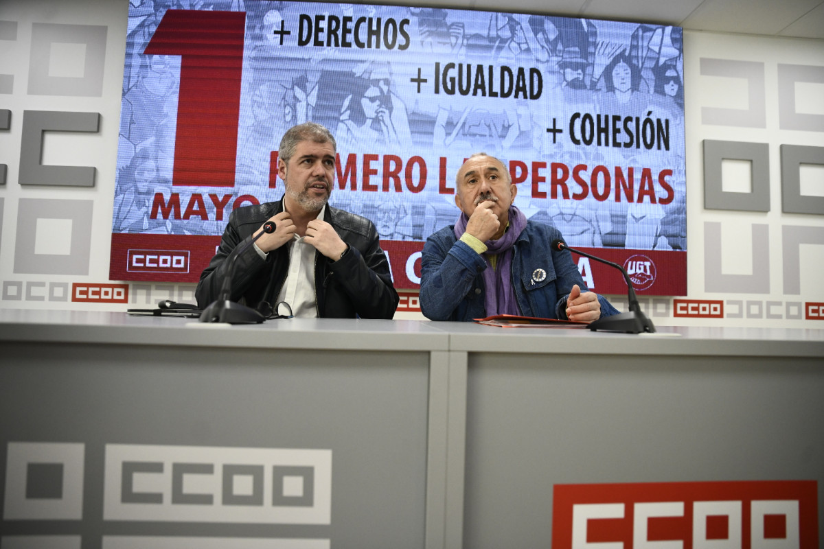 Día de los Trabajadores a tres días de la celebración de unas elecciones generales. El secretario general de CCOO, Unai Sordo, y el de UGT, Pepe Álvarez, afrontan la fecha de este primero de mayo con "un grito unánime" para un acuerdo de izquierdas, "cuanto antes", con un "programa de izquierdas para poder hacer frente a las necesidades sociales que se viven en el país".