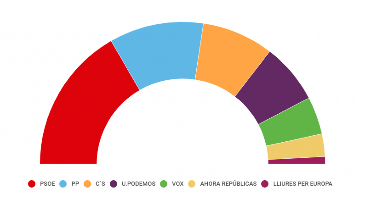 La coalición Ahora Repúblicas (liderada por ERC y Bildu) lograría tres asientos y Lliures per Europa sólo uno, el de Carles Puigdemont.