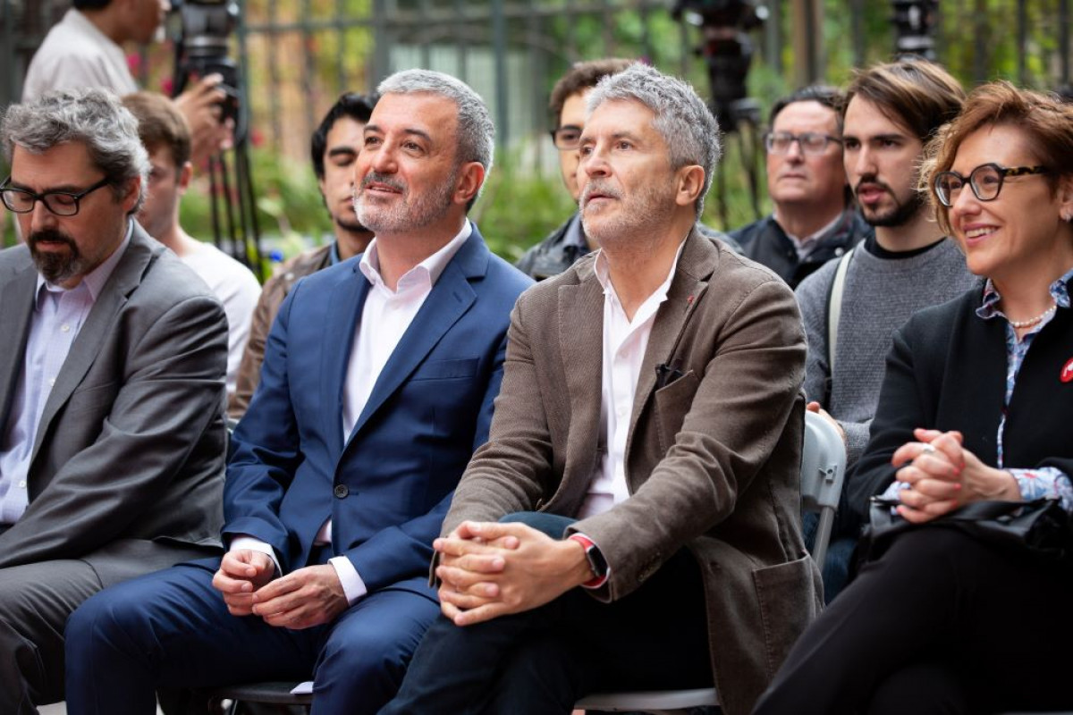 El alcaldable socialista ha participado en un mitin con el ministro en funciones del Interior, Fernando Grande Marlaska, y el exdirector de los Mossos, Albert Batlle.