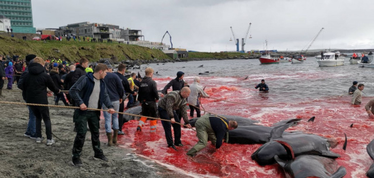 Alrededor de 250 ballenas y delfines fueron masacradas por pescadores en la ciudad de Torshavn, capital de las Islas Feroe. Los animales fueron brutalmente asesinados para comercializar su carne, algo que ocurre a menudo en esta región en esta época del año, cuando estas especies migran hacia el norte.
