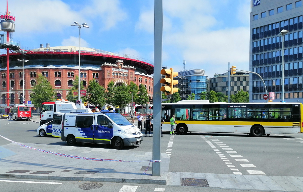 Pasado el mediodía han reabierto la avenida Paral·lel después de limpiar la zona de cristales y otros objetos, y de apartar con una grúa los dos autobuses.