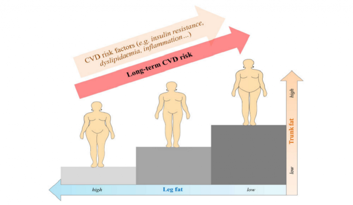 Entre las mujeres posmenopáusicas con un índice de masa corporal normal, una mayor cantidad de grasa en el tronco se asocia con un mayor riesgo de enfermedad cardiovascular, mientras que una mayor cantidad de grasa en las piernas se asocia con un menor riesgo / European Heart Journal