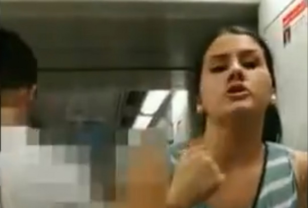 La agresora les recrimina que se besen -asegura que tiene un hermano homosexual y que no lo hace delante de ella porque le da asco- y les llama 'mariconas' "y encima catalana", según un vídeo que ha difundido una de las víctimas en Twitter.