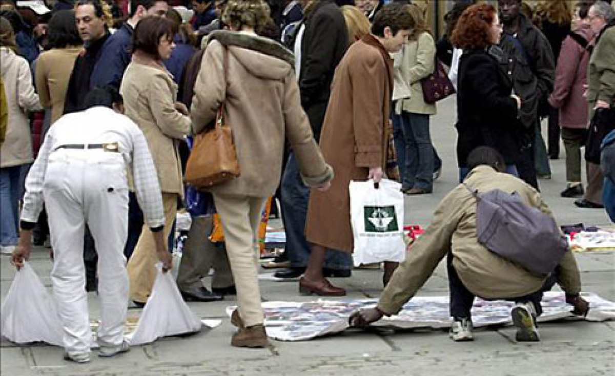 Los efectivos policiales están en las zonas donde acostumbran a colocarse decenas de vendedores de top manta que venden mercancías como bolsos, zapatillas, gafas de sol, pañuelos y ropa deportiva, entre otros productos.
